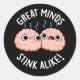 Great Minds Stink Alike Funny Brain Pun Dark BG Classic Round Sticker