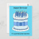 A giant birthday cake, iced in blue and white, and covered in several lit candles. The image has a turquoise background and is accompanied by the words 'Happy Birthday to a Special Great Nephew'.