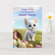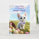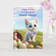 A cute kid's Easter card with a darling blue eyed pink eared kitten and decorated eggs. This is a customable text card, so if you call her your grandniece or great niece, you can edit it accordingly. Pretty spring colors and green grass.