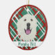 Lightweight, smooth, pure white ornament with nice sheen. Perfect size to be seen from across the room ... and to attract closer inspection! Price was great for ordering enough for the whole family! Clear, bold black design just as requested. Matches the order exactly. Just so nice!