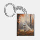 Great Pyrenees in Autumn Leaves Fall Inspire Keychain