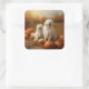 Great Pyrenees Puppy Autumn Delight Pumpkin Square Sticker