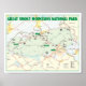Modern map of Great Smoky Mountains National Park in North Carolina and Tennessee. The map includes roads, rivers, towns, and park features.