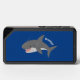 A happy, hungry great white shark is swimming in the ocean. Drawn in cute cartoon illustration style for a fun day!