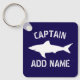 Great white shark logo personalized boat captain keychain. Nautical navy blue and white ocean fish design. Maritime Birthday or Father's Day gift idea for sailor men. Make your own for skipper dad, father, grandpa, grandfather, husband, uncle, son, friend, stepfather, stepdad, friend, boss, co worker, employee, staff, fisher, etc. Vintage typography with grungy icon design. Customizable gift for sailing, boating or fishing on the sea / ocean. Also great for cruise, divers, surfers, fishers or sailboat crew members.