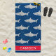 Great White Sharks Navy Red Custom Name Beach Towel