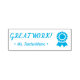 This inspiring rubber stamp design features the encouraging feedback message "GREAT WORK!" and a customized educator name. It also features a decorative prize ribbon icon. It could be used by a school teacher, educator, instructor, or tutor when grading student work, to indicate that a student has done an exceptional job.