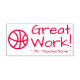 This inspiring rubber stamp design features the praising message "Great Work!" and a customized educator name. It also features a decorative basketball icon. It could be used by a school teacher or educator when marking assignments, to acknowledge that a student has done well.