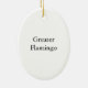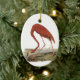 This is a painting of an adult male Greater Flamingo. There are more flamingos wading in the water in the background.