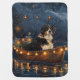 Set sail into the magic of the holiday season with this beautifully detailed illustration, showcasing a proud dog sitting in a festively decorated boat, gliding across a serene Christmas lake. The twinkling lights from nearby pine trees reflect off the water, casting a warm, festive glow that enhances the cozy ambiance. Ornaments dangle from the boat's sides, while glowing lanterns light the way, creating a scene that captures the true essence of Christmas warmth and joy. This nostalgic artwork brings a touch of holiday magic to any space, perfect for those who cherish the spirit of the season.
