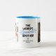 Modern brother mug featuring 2 photos for you to replace with your own, the saying "the world's greatest brother", a blue heart, and your name.