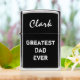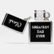 Greatest Dad Ever Black White Personalized Chrome Zippo lighter has a black customizable background as shown in photo and has "Greatest Dad Ever" on front lower area and customized with name in white calligraphy script lettering on the flip area. Makes a great gift idea for a birthday, holiday, Father's Day or any occasion.