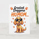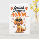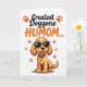 This card features a golden-brown, puppy-like dog sitting calmly on a white background, smiling with its tongue slightly out as if sharing an affectionate moment with its favorite person ❤️. The dog wears spotted sunglasses with dark lenses and a patterned collar with a shiny round tag, adding a friendly, “we’re in this together” kind of charm. Above the dog, the phrase “Greatest Doggone” appears in black, flowing cursive lettering, set on a gentle curve that leads your eye downward. Just beneath it, “HUMOM...” is printed in large, all-capital orange letters that stand out strongly against the white space. Small orange paw prints are sprinkled around the design like little traces of a loyal companion following close by 🌼. The warm golden fur tones and the orange accents create a cozy, affectionate look, like a shared grin between best friends. Scattered orange paw prints frame the dog while the black cursive text sits at the top and the orange word lands just above the sunglasses.