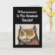 Give a funny owl birthday card to your uncle with the humorous question “Whoooo is the greatest uncle?” He will smile at the verse inside and the bold owl watercolor painting showing realistic details of the classic bird.