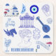 A minimalist design of Greek elements in shades of blue and white, perfect for travel lovers.