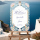Greece Blue Floral Ornate Frame Wedding Welcome Acrylic Sign