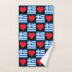 Greece Flag and Heart Pattern Fun Greek Pride Hand Towel