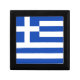 The ceramic lid of this keepsake box features the Greek flag reshaped to fit the square surface. This item is both decorative and useful and is the perfect place to keep small mementos of Greece.