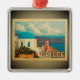 A cool vintage style Greece ornament featuring a classic scene with a blue dome church and the mediterranean.