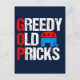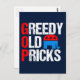 This Anti GOP design stands for Greedy Old Pricks in this funny Anti Republican party design featuring the conservative elephant in red, white, and blue. Democrats will love this humor.