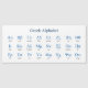 Lower and upper case greek letters with their names. Vector object with custom colors for title, letters and letter names. Custom background color.