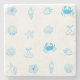 A cute pattern of beach symbols like crabs and hibiscus, and outlines of seashells, cherries, strawberries, and ice cream. This summer blue and white design is a perfect gift for beachcombers, travelers, and vacation lovers.