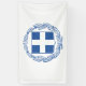 This design features the coat of arms of Greece (officially known as the Hellenic Republic), which is a country located in Southeast Europe. The capital city of Greece is Athens, which is also the country's largest city, followed by Thessaloniki. Other major cities in Greece include Patras, Piraeus, Larissa, Heraklion, Peristeri, Kallithea, Acharnes, Kalamaria, Nikaia, Glyfada, Volos, Ilio, Ilioupoli, Keratsini, Evosmos, Chalandri, Nea Smyrni, Marousi, Agios Dimitrios, Zografou, Egaleo, Nea Ionia, Ioannina, Palaio Faliro, Korydallos, Trikala, Vyronas, Agia Paraskevi, Galatsi, Agrinio, Chalcis, Petroupoli, Serres, Alexandroupoli, Xanthi, Katerini, Kalamata and Kavala. The coat of arms comprises a white Greek cross on a blue escutcheon (a technical term for a heraldic shield), all surrounded by two laurel branches.