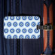 An illustration of a Greek evil eye inside a Greek key.