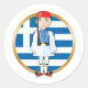 A Greek Evzone standing at attention in front of a Greek flag. Customize this item with a name, comment or whatever you like to make it truly unique!