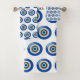 Bath towel set, consisting of a face cloth, hand towel and bath towel with a Greek eye design. You can customise this bath towel set with the name of your favourite place in Greece or any other text of your choice. Should you require any help with customising then contact us through the message link on this page. Greek eye design bathroom towel set