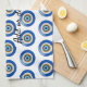 Kitchen towel Greek eye design. The Greek eye symbol, or "mati", is a blue and white eye-shaped amulet used for energetic protection against the evil eye, a curse from envious glares causing misfortune. It's a deeply rooted cultural symbol in Greece, believed to reflect negative energy back to the source, to ward off harm. You can customise this tea towel with the name of your favourite place in Greece or any other text of your choice. Should you require any help with customising then contact us through the link on this page. Greek eye design personalised tea towel