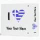 Design uses a funky heart of the Greek Flag and your added custom text to read I LOVE (YOUR TEXT). The heart of the Flag of Greece is used in place of the word LOVE. What is it you love: Hellas? Baklava? You can personalize this design to make a fun gift, too.