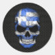 Greek Flag Skull on Steel Mesh Graphic Classic Round Sticker