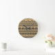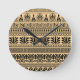 Greek Fret, Mediterranean Pattern, Brown Round Clock