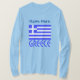 Greek flag and the word GREECE, below, in blue letters. The flag shows blue and white stripes with a blue and white cross in the upper right area. Above it, add your name, in a different shade of blue, for a personalized touch to this women's long sleeve t-shirt, or create a customized gift. Fun for Greek family reunions, travel groups, and sharing your love an pride in your heritage, ancestry and culture. Great for celebrating Oxi Day (Ohi or Ochi, too). You can change the font and color of your name by using the "edit design" option.