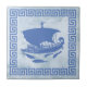 Classic Greek key design with Greek sail ship and playful dolphins. Blue, textured.