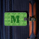 Classic Greek Key pattern in deep emerald green on a light lime green background, with monogram and customizable contact information
