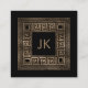 Greek Key Meander Monogram Gold on Black Square Business Card