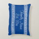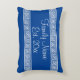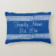 Greek key meander pattern custom family name throw pillow. Personalized royal blue and white striped cushion for bed, sofa, couch, chair etc. Elegant decorative design with stylish script typography. Classy home decor for new house, classy bedroom, living room, restaurant, bar, cafe, office, boat, etc. Create your own unique decorations. Chic wedding gift idea for newly weds, couple, bride and groom, husband and wife, family members, friends etc. Luxurious Greek fret geometric pattern typical for ancient Greece. Stylish border with text template. Unique interior design ideas and accessories. Customizable background color and font. Rectangle shape.