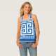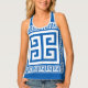 Tank top with Greek key (Meander) pattern elegant design in white and blue with key border to match. This design of the famous and popular Greek pattern of the continuous line can be edited to change its color if you like. You can also change the background color of the design by editing it.