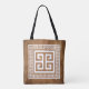 Tote bag with Greek key (Meander) pattern elegant white design with key border to match on brown ancient Greece style background. This design of the famous and popular Greek pattern of the continues line can be edited to change its color if you like.