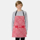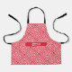 Great color and even though I ordered the kid size, it covers well enough to use during the holidays. I am not a big woman and prefer a shorter apron. I stand 5"6" and the length of the garment goes to mid-thigh. The tie straps fit well at my waist and even though there is no neck strap adjustment, the opening is plenty big enough. I am happy with the size and fit. I am sharing my apron with my 10 year old grandson, too! The color is vibrant and looks good, as shown on the website. The stitching looks strong and reinforced. Photographed is front side and back side of the apron, reinforced straps and coloring. My phone camera may not be the best at showing the details.