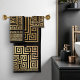 Greek Meander key ornament - black and gold Bath Towel Set
