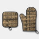 Greek Meander Key Squares Pattern Brown Oven Mitt & Pot Holder Set