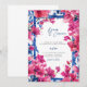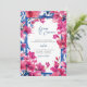 This wedding invitation features a painting of the mediterranean greek with pink flowers. bougainvillea wedding invitation. Easily edit *most* wording to meet your event needs. You can change the background color and add your own photo to the backside.
