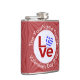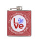 The blue and white Flag of Greece in a heart shape makes the O in the red lettered word LOVE. Below it reads VALENTINE'S DAY 20??. You can customize the year or say anything you like on this hip flask. Above, a spot for your family name or any name you wish for added personalization. The word LOVE sits in the center of a digital art created white, fractal circle of squiggly squares. The whole design has a red background of fractal squiggly squares.