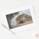 Rectangular photo sticker of the ruins of the ancient Greek temple at Segesta, Sicily in Italy seen from under an old olive tree on a cloudy day.
