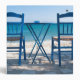 Blue is the color of Greece. This image shows a typical set up at a greek beach taverna.