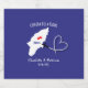 A fun labels for couples getting married in the Greek Island of Rhodes with a silhouette map and plane and a swirling heart. So easy to customize with your personal details at no extra cost.