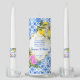 Blue tiles Bougainvillea and lemon Amalfi Positano Mediterranean style custom wedding candle personalized name for a wedding ceremony.